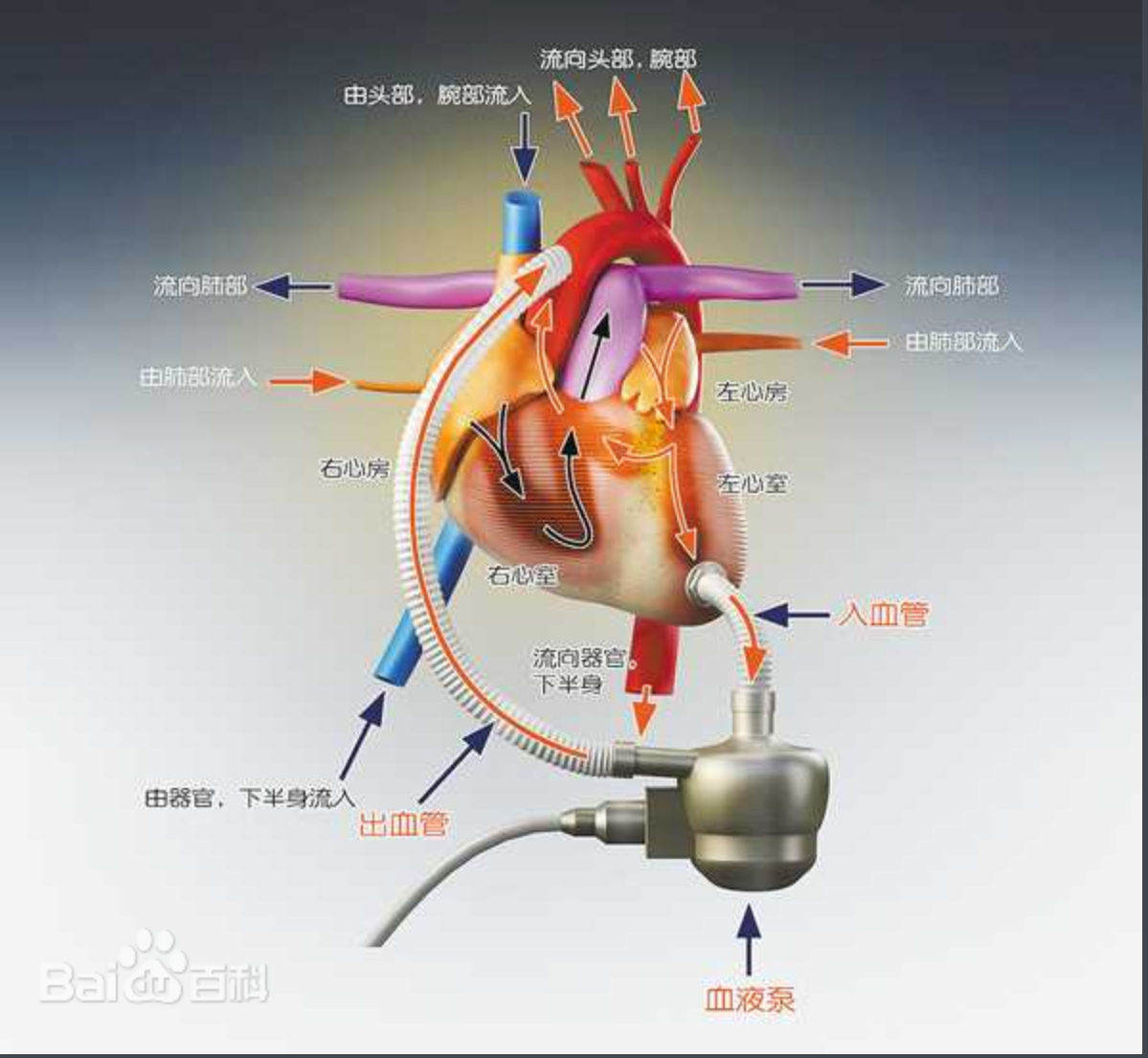 LVAD forces left ventricular blood into the aorta with a centrifugal pump at 4000-6000 rpm. The left heart is saved, but the right heart is suffocated to death.